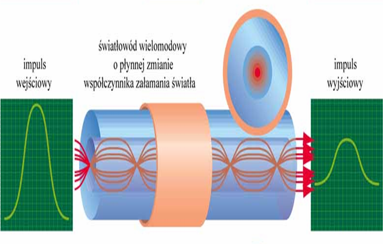 Przepływ strumieni świetlnych w światłowodzie wielomodowym gradientowym